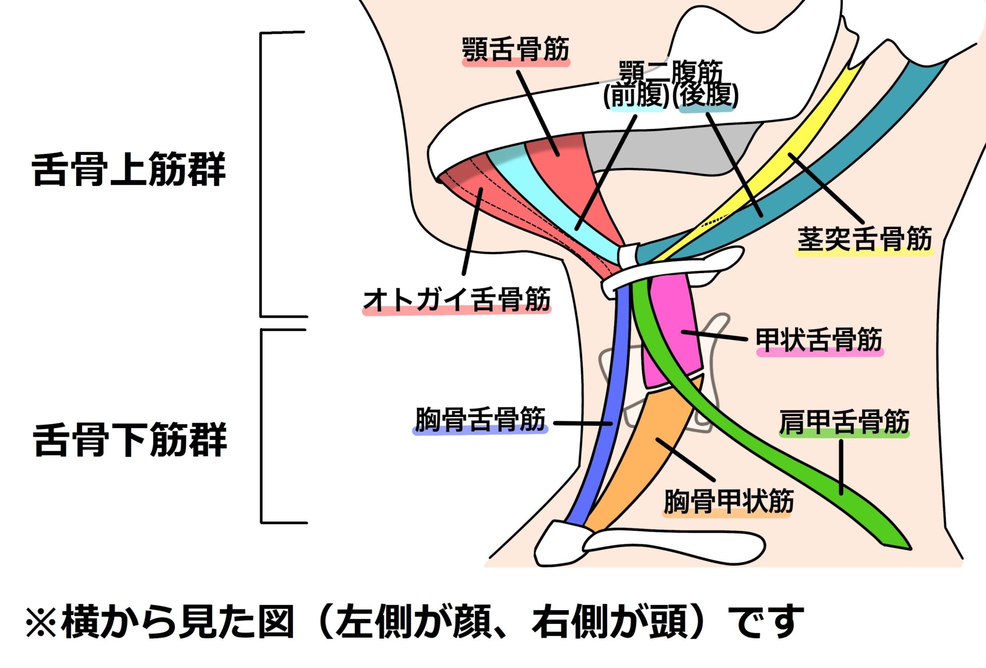 喉頭隆起の動きを妨げるのが、舌骨上筋群および舌骨下筋群です。